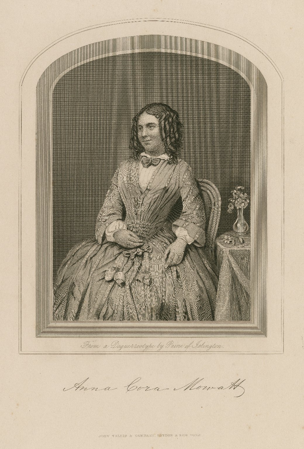Anna Cora Mowatt, depicted in this undated engraving based off of a photograph. Courtesy of the Folger Shakespeare Library.