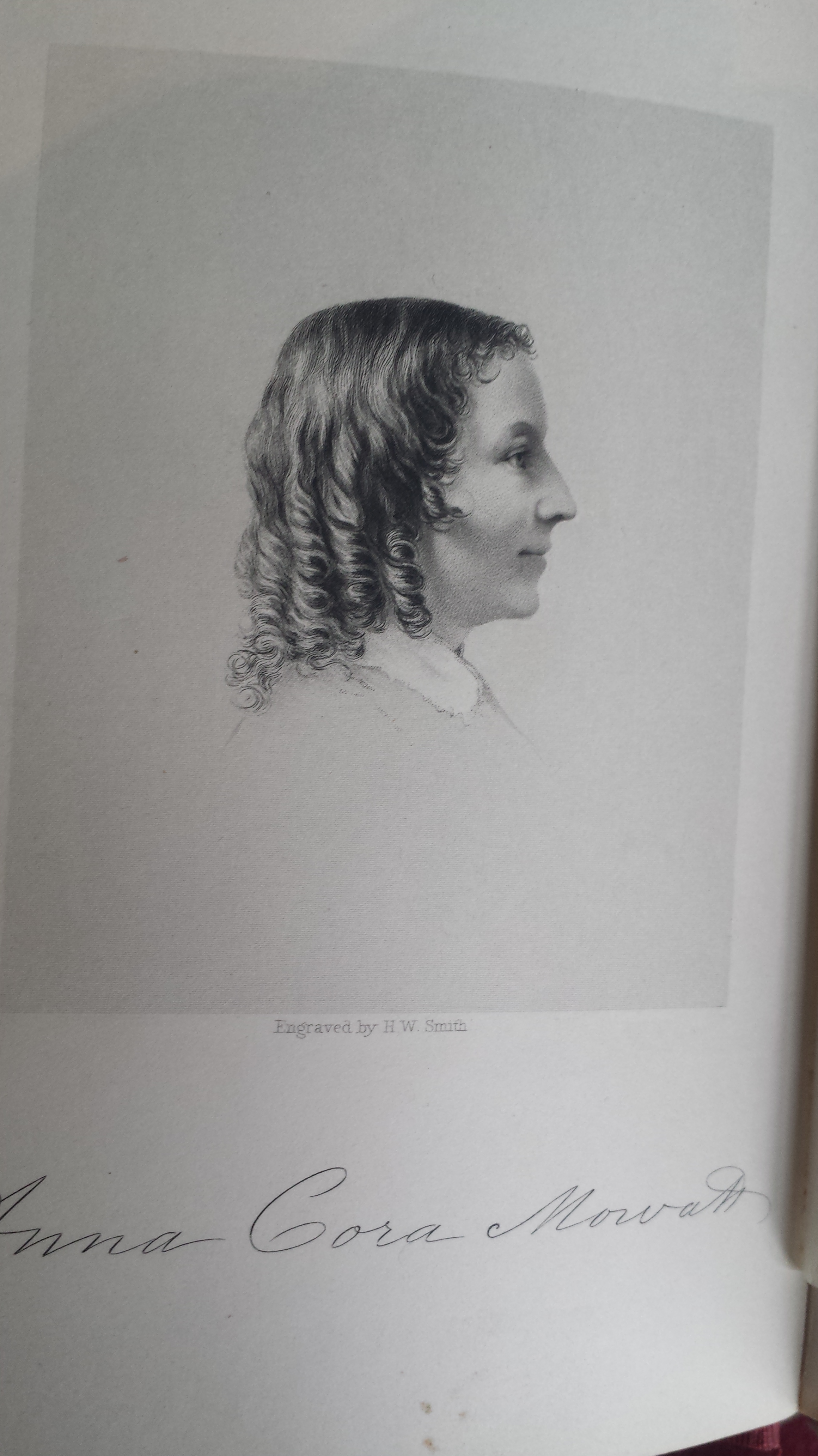 The book tells the story of Mowatt’s life up through 1853. It’s not exactly the most thrilling read, but it’s especially interesting for the way that Mowatt is constantly insisting on the dignity of her profession. It seems that the gist of virtually every other paragraph is: “Hey, we actors aren’t such bad people!” The same message comes up in quite a lot of the fiction that she published in later years, when she wrote sentimental tales of life on the stage. I don’t think it’s excessively cynical to say that her writing provided an excellent PR platform, allowing her to stick up for her profession and her continue to build up her own reputation.